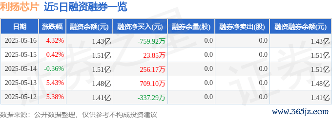利扬芯片融资融券信息显示,融资方面,当日融资买入1439.46万元,融资偿还2199.37万元,融资净偿还759.92万元。融券方面,融券卖出0.0股,融券偿还0.0股,融券余量0.0股配资盘股票配资网,融券余额0.0万元。融资融券余额1.43亿元。